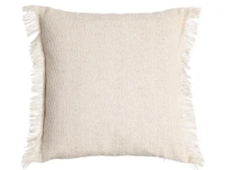 El precio original era: 18,90€.15,12€El precio actual es: 15,12€.Cojín blanco roto flecos