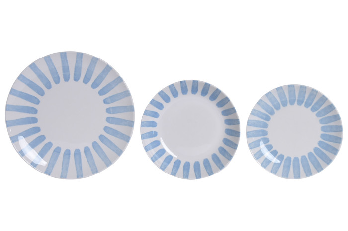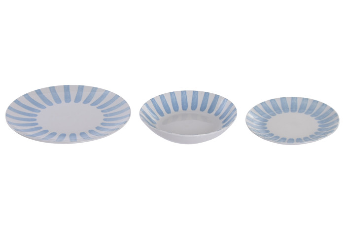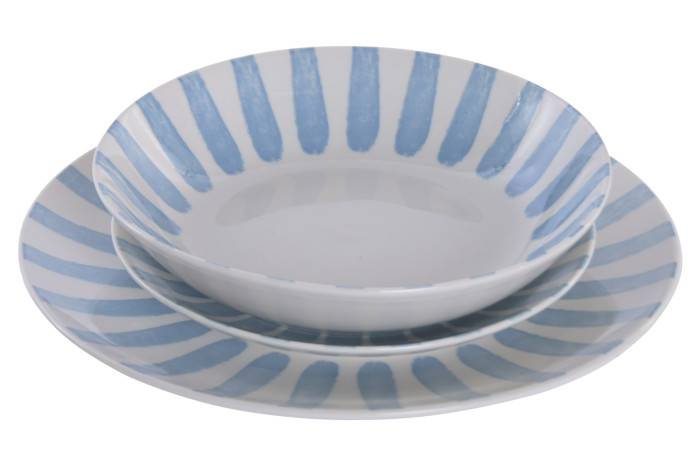 Vajilla rayas, compuesta de 18 piezas. 6 platos hondos, 6 platos llanos y 6 platos postre.