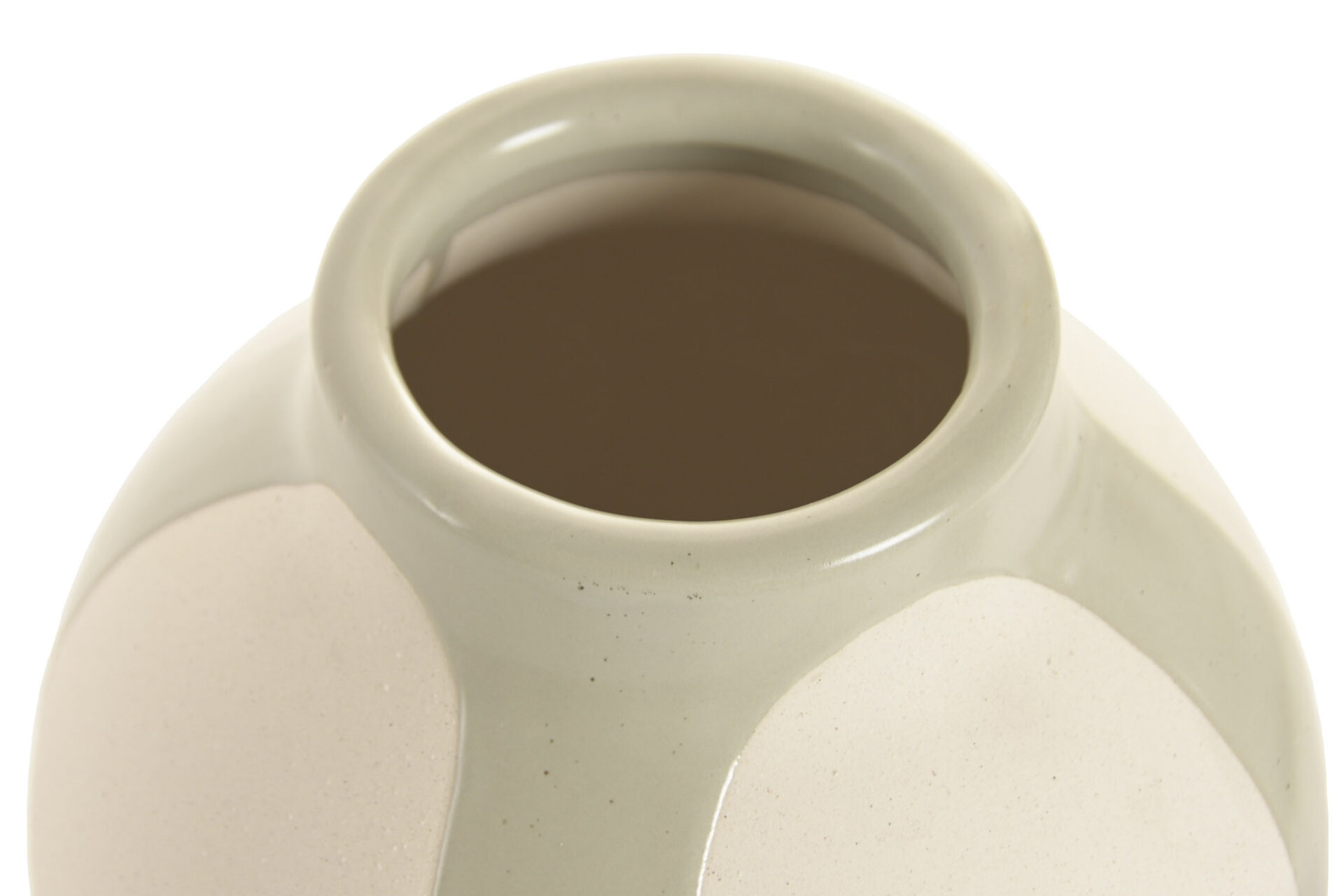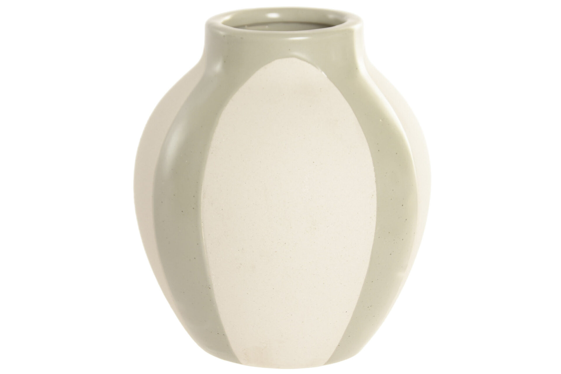 Jarrón en gres, en tono beige y verde.