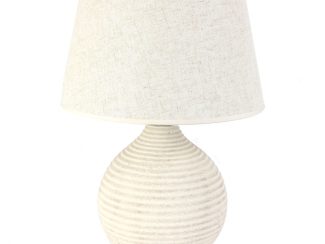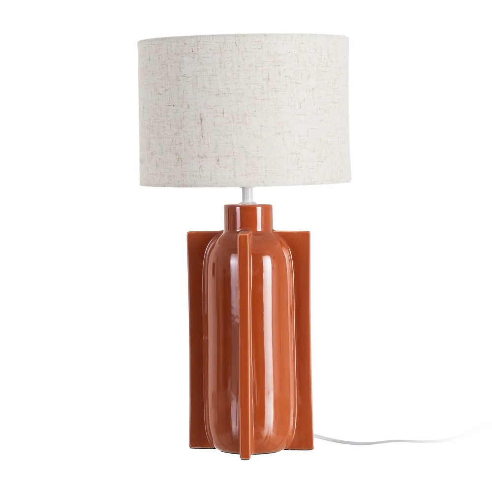 Lámpara de sobremesa en color caldera, pantalla en lino.