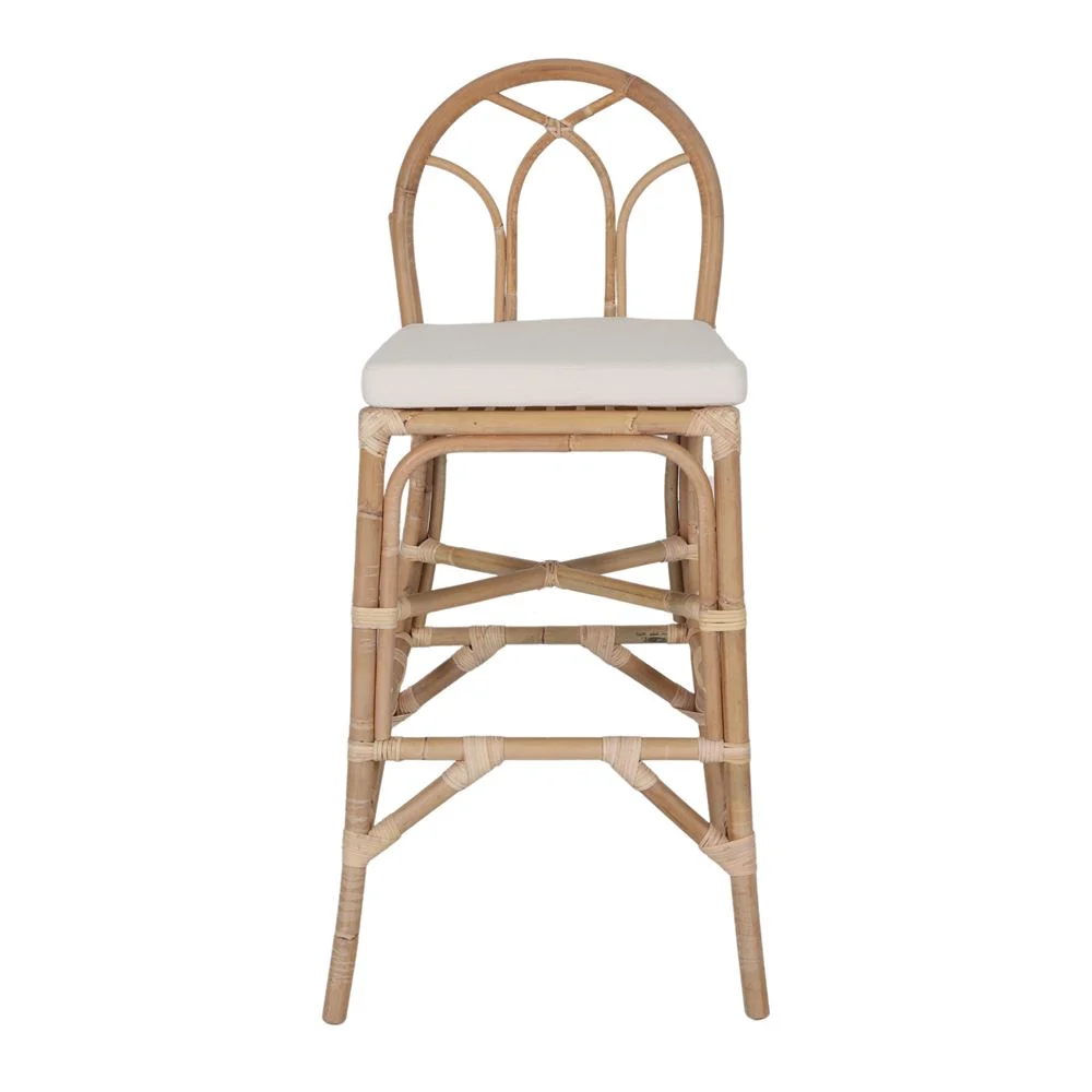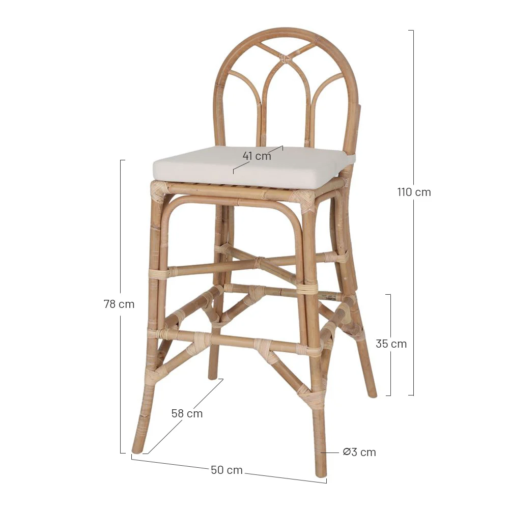 Taburete fabricado en ratán. Estructura en ratán, cojín asiento incluido.