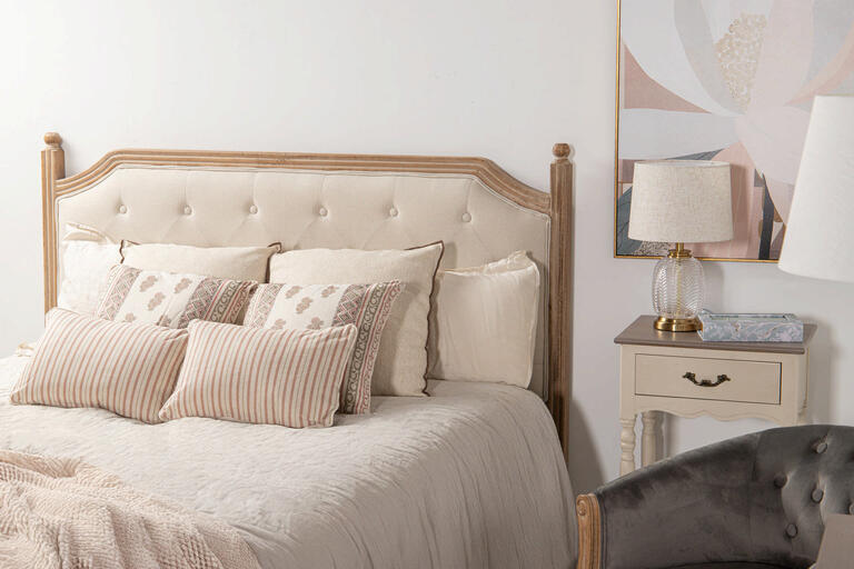 Cabecero para cama de 150, en color natural, tapizado en lino.