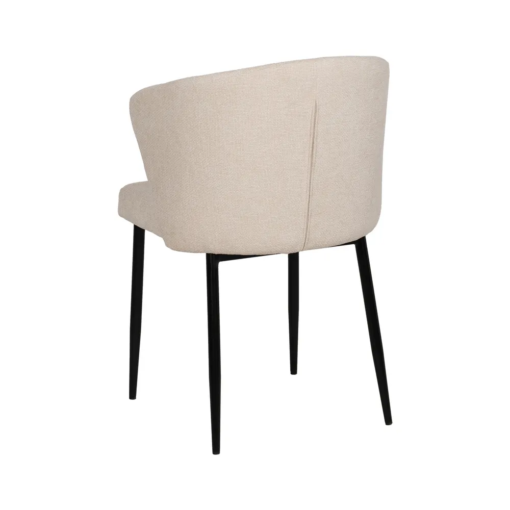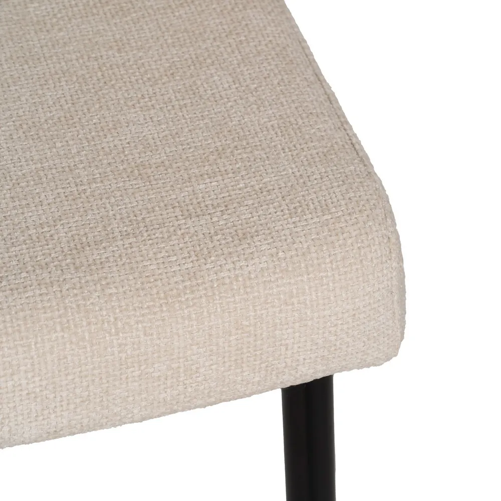 Silla tapizada en blanco, patas en metal.